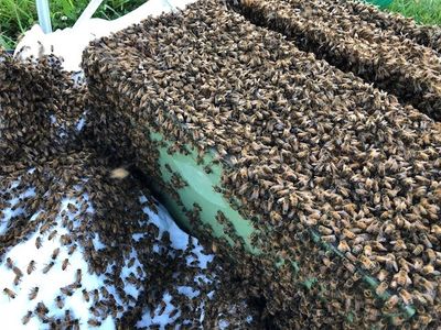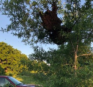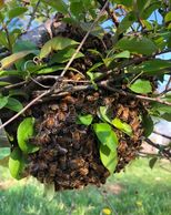 We generally do not collect swarms more than 10' above the ground. Removal of a swarm that has moved under or into a tree, shed, home, chimney or other structure is called a "cut out". We do not perform cutouts or removals, but may be able to refer you to others who may perform those services (typically for a fee). We also do not collect or remove yellow jackets, wasps, carpenter bees, or insects other than honey bees.