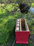 Once the queen is in the hive box, the rest of the swarm simply walks in.